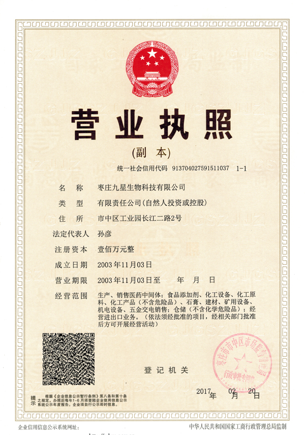 棗莊九星生物科技有限公司 版權所有(C)2023 網絡支持 中國化工網 生意寶 網盛建站 著作權聲明 企業(yè)郵局 魯ICP備12006429號-1